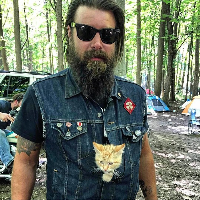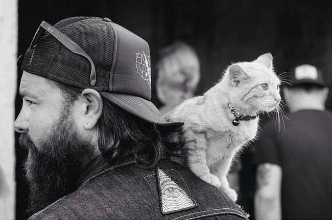 Проезжая по Калифорнии этот парень доказал, что за страшной внешностью байкера прячется мягкое сердце, способное на добрые дела. Патрик Дуди ехал из путешествия домой в Нью-Джерси, и остановился в Неваде. Именно здесь он нашел для себя нового рыжего друга, который теперь повсюду с ним. Да и дом Патрика теперь надежно защищен от мышей.