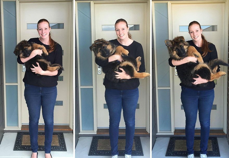 Алекс Деннисон и Эшли Льюис не думали, что тот маленький щенок, которым был их пес, так быстро вырастет. Уже через 8 месяцев удержать его на руках стало невозможно. Когда он был маленьким друзья останавливали Алекса и Эшли на улице со словами «какой милый». Теперь же они говорят «какие огромные лапы», «он такой большой».
