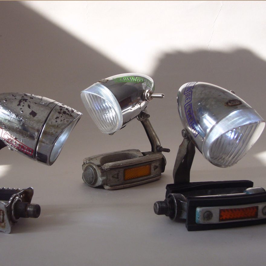 Стюарт Вулф — художник из Лондона. В один прекрасный момент он задумался о том, что старые вещи можно использовать не только по их прямому назначению. В поле его зрения попали педали от старых велосипедов и фонари от них же. Сочетание получилось необычное, но светильники работают на ура и пользуются спросом.